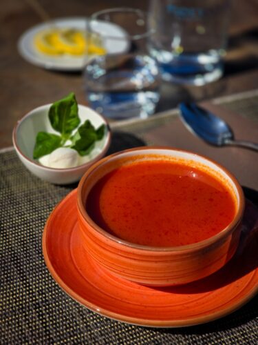 Bazsalikomos paradicsomleves, mozzarella golyó (G,L)